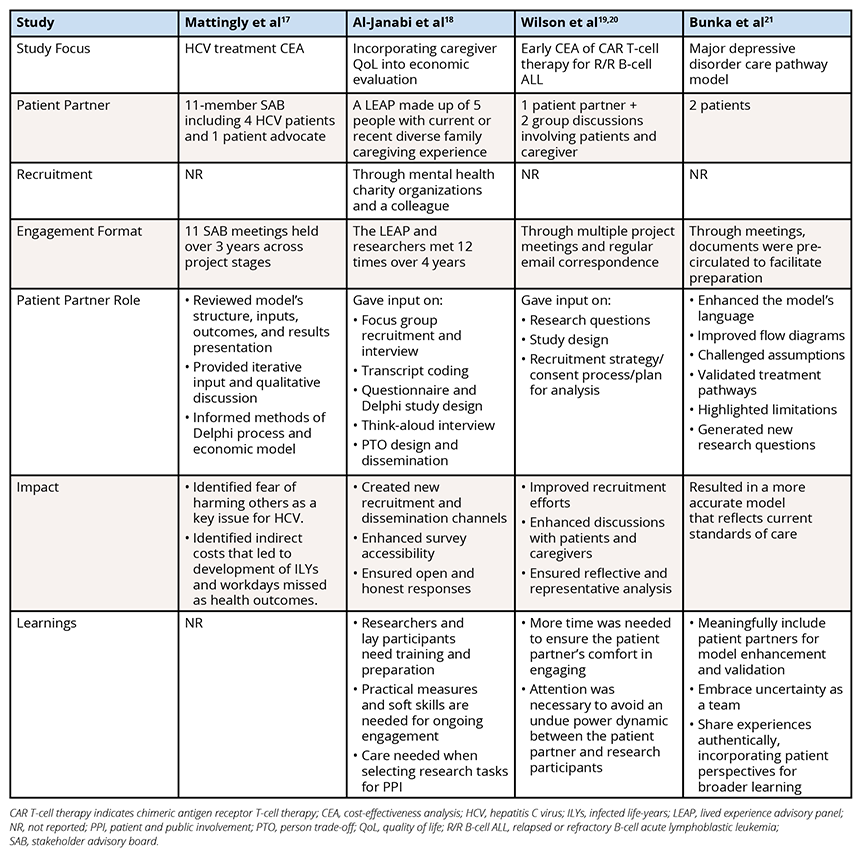 Table. Patient Engagement and Impact Reported in Economic and Disease Modeling Publications